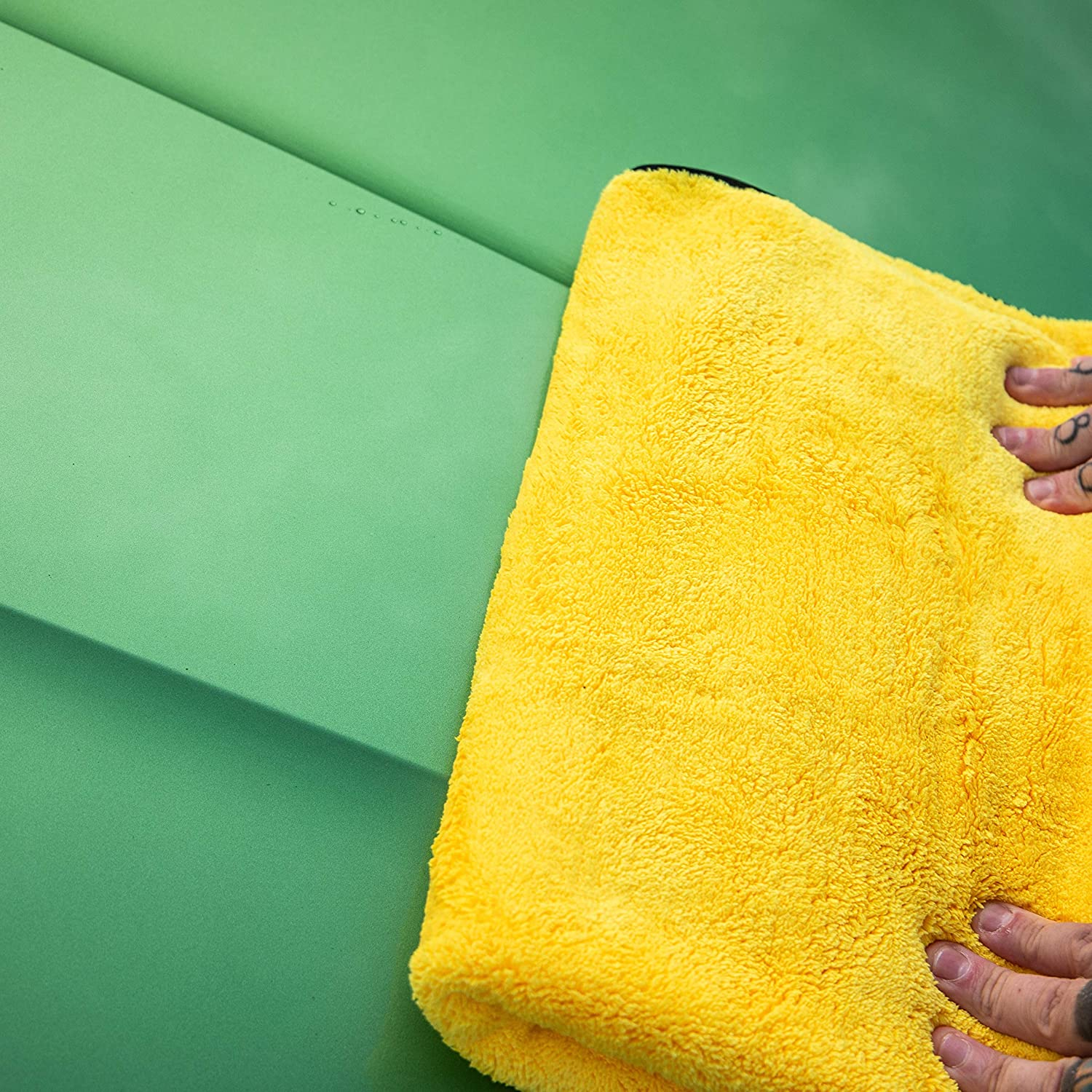 Fahrzeug im Schatten mit Wasser vorreinigen. 30 ml NXT Car Wash in einen Eimer geben und mit 4 Liter Wasser aufschäumen. Fahrzeug mit der Waschlotion und einem Mikrofaser Waschhandschuh –Meguiar’s Microfibre Wash Mitt – waschen. Gründlich mit klarem Wasser abspülen. Um Wasserflecken zu vermeiden, das Fahrzeug sofort mit einem Trockentuch (Water Magnet, Supreme Drying Towel) trocknen.