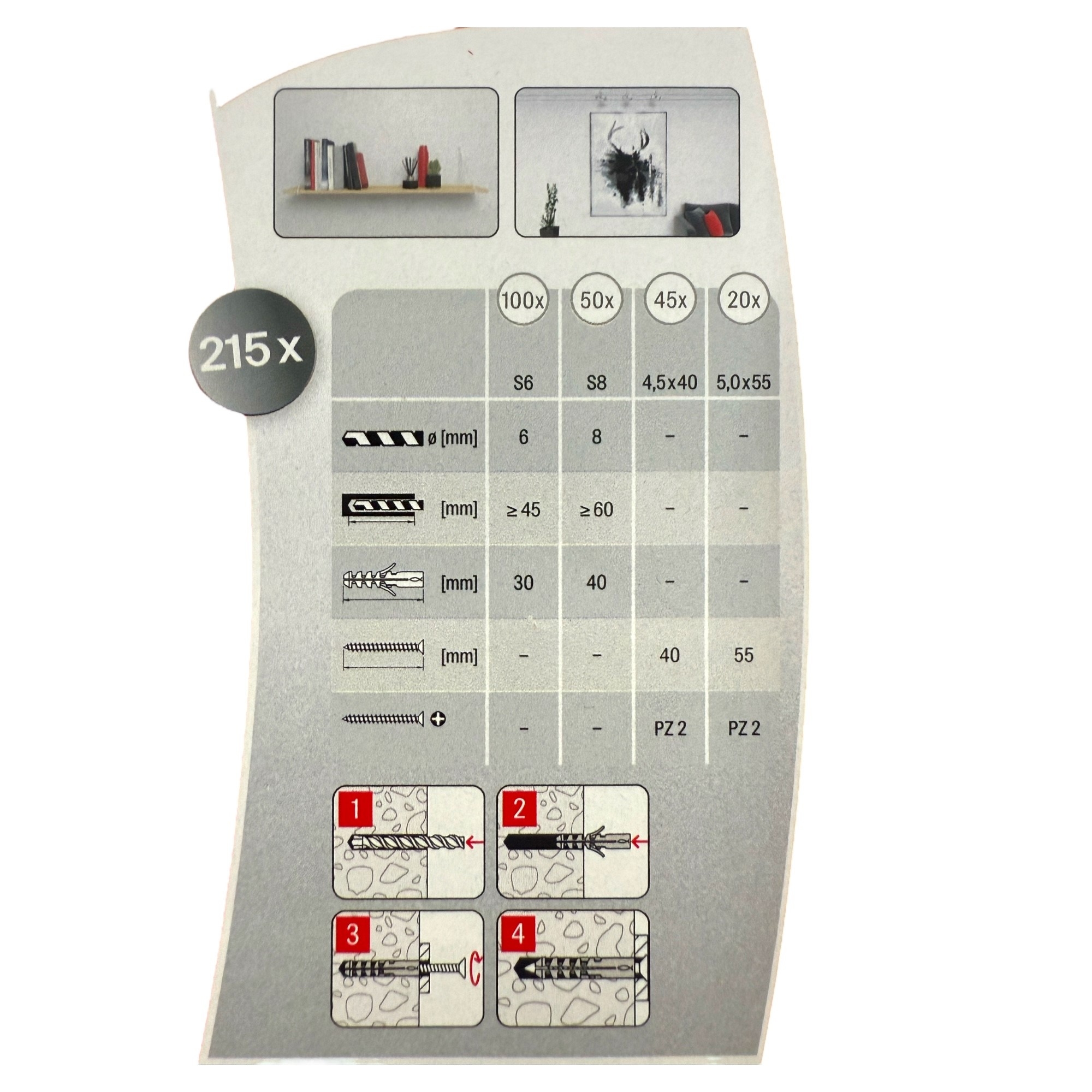 Die praktische Meister-Box mit fischer Spreizdübel S6, S8 und Schrauben.
