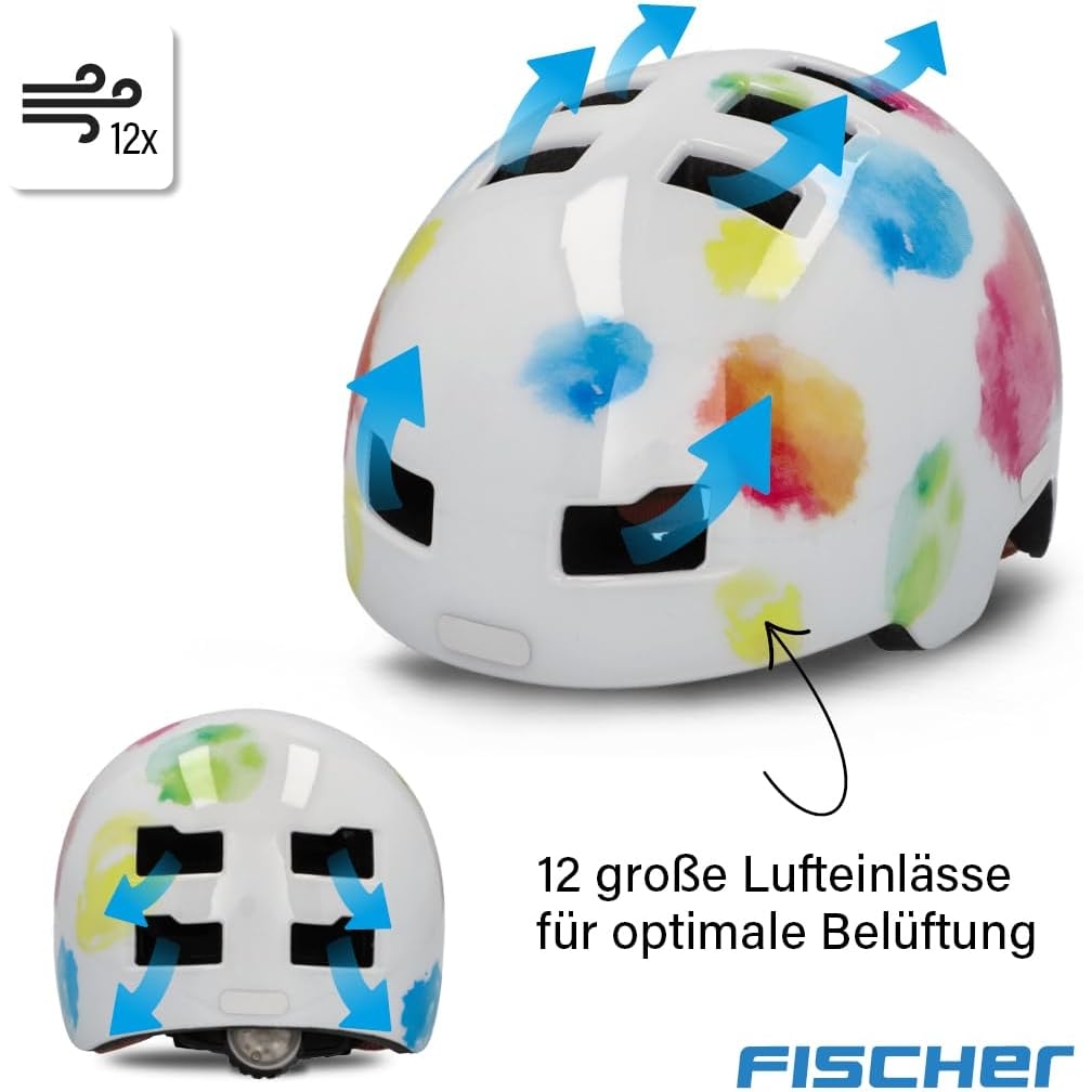 FISCHER BMX Fahrradhelm, Radhelm, Dirt Bike Helm Plus Splash, XS/S, 48-54cm, bunt, mit integriertem LED-Rücklicht