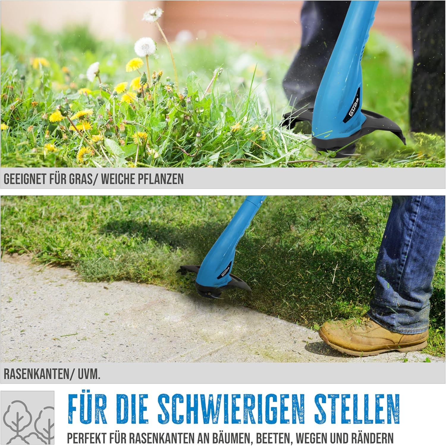 Produktbeschreibung Der Rasentrimmer GRT 251 P von Güde eignet sich für Mäharbeiten an Rasenkanten und schwer zugänglichen Stellen. Mit einer Leistung von 250 W trimmt er zuverlässig Gräser und Pflanzen. Das Gerät erreicht eine Motordrehzahl von 12500 1/min. Die Schnittbreite von 220 mm ermöglicht ein effizientes Arbeiten. Das 2-Fadensystem mit Tipp-Nachstellautomatik führt den Faden bei Bedarf nach. Ein Zusatzhandgriff sorgt für mehr Kontrolle und Stabilität und ermöglicht einen komfortablen Einsatz. Die ergonomische Konstruktion erleichtert längere Einsätze und reduziert die Belastung der Arme. Mit einer maximalen Arbeitsgriffhöhe von 900 mm passt sich das Modell verschiedenen Nutzern an. Die Zugentlastung schützt das Anschlusskabel vor Schäden und sorgt für einen sicheren Betrieb. Produktmerkmale Rasentrimmer Netzspannung: 230 V Motorleistung: 250 W Motordrehzahl: 12500 1/min Schutzklasse: II Schutzart: IPX0 Schnittbreite Fadenspule: 220 mm Fadenlänge: 600 cm Fadendurchmesser: 1,2 mm Max. Arbeitsgriffhöhe: 900 mm Lärmwertangabe LWA: 96 dB Anschlusskabellänge: 35 cm Maße: L 995 x B 235 x H 250 mm Zusatzhandgriff 2-Fadensystem Tipp-Nachstellautomatik Kabelzugentlastung