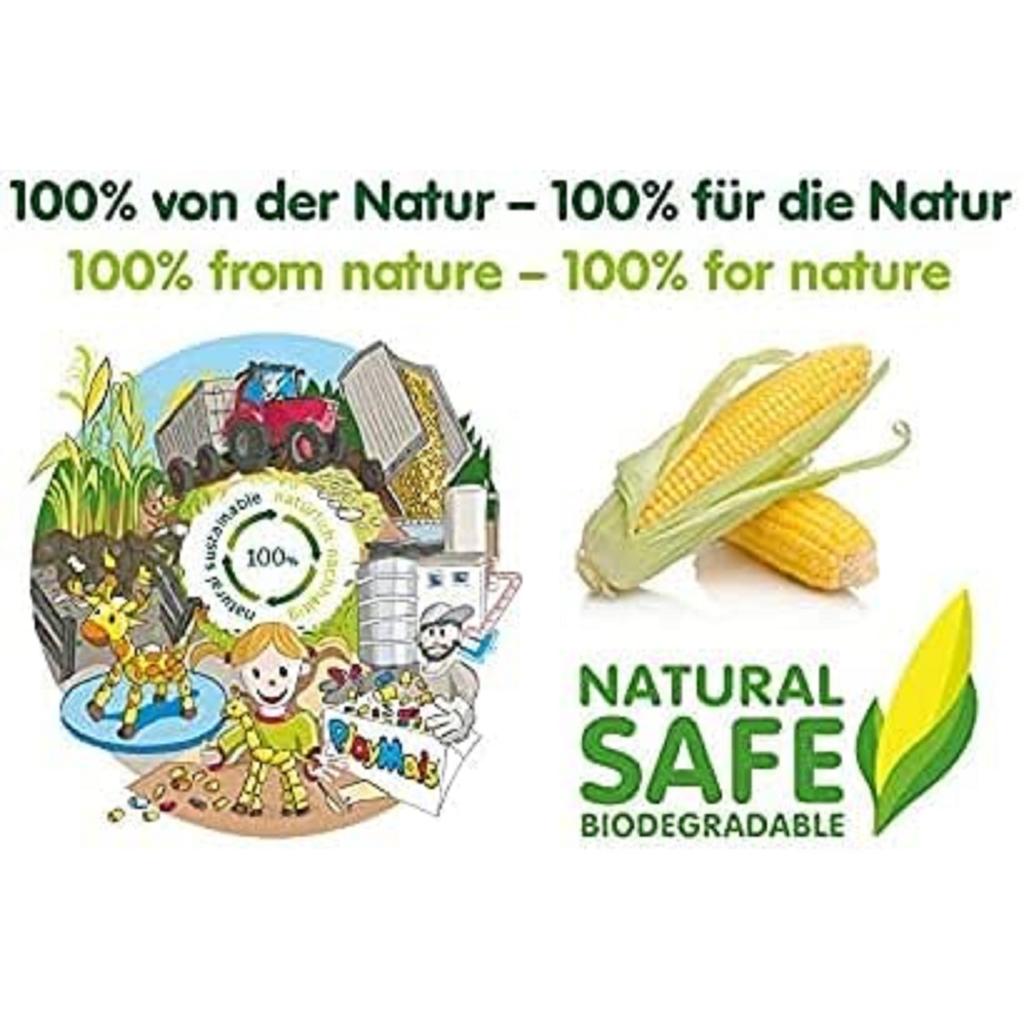 - MADE IN GERMANY: Hergestellt auf Basis von Maisgrieß & Wasser und eingefärbt mit Lebensmittelfarbe, ist Play Mais ein 100% biologisch abbaubares Naturprodukt. Entwickelt & hergestellt in Deutschland.