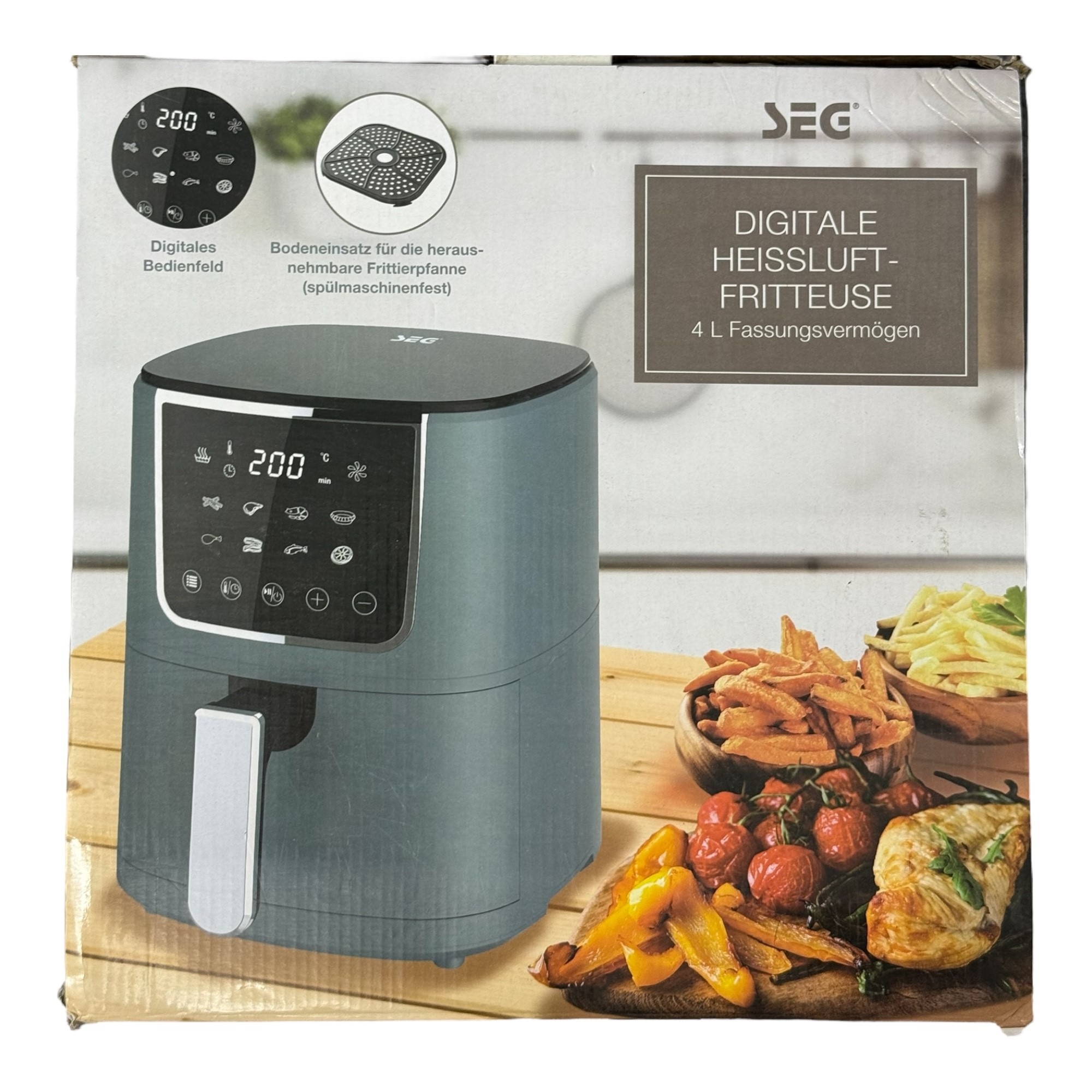 Jetzt die SEG Digitale Heissluft Fritteuse AF2599 in grau/ blau entdecken und knusprige Lieblingsgerichte bequem und bewusst zubereiten.