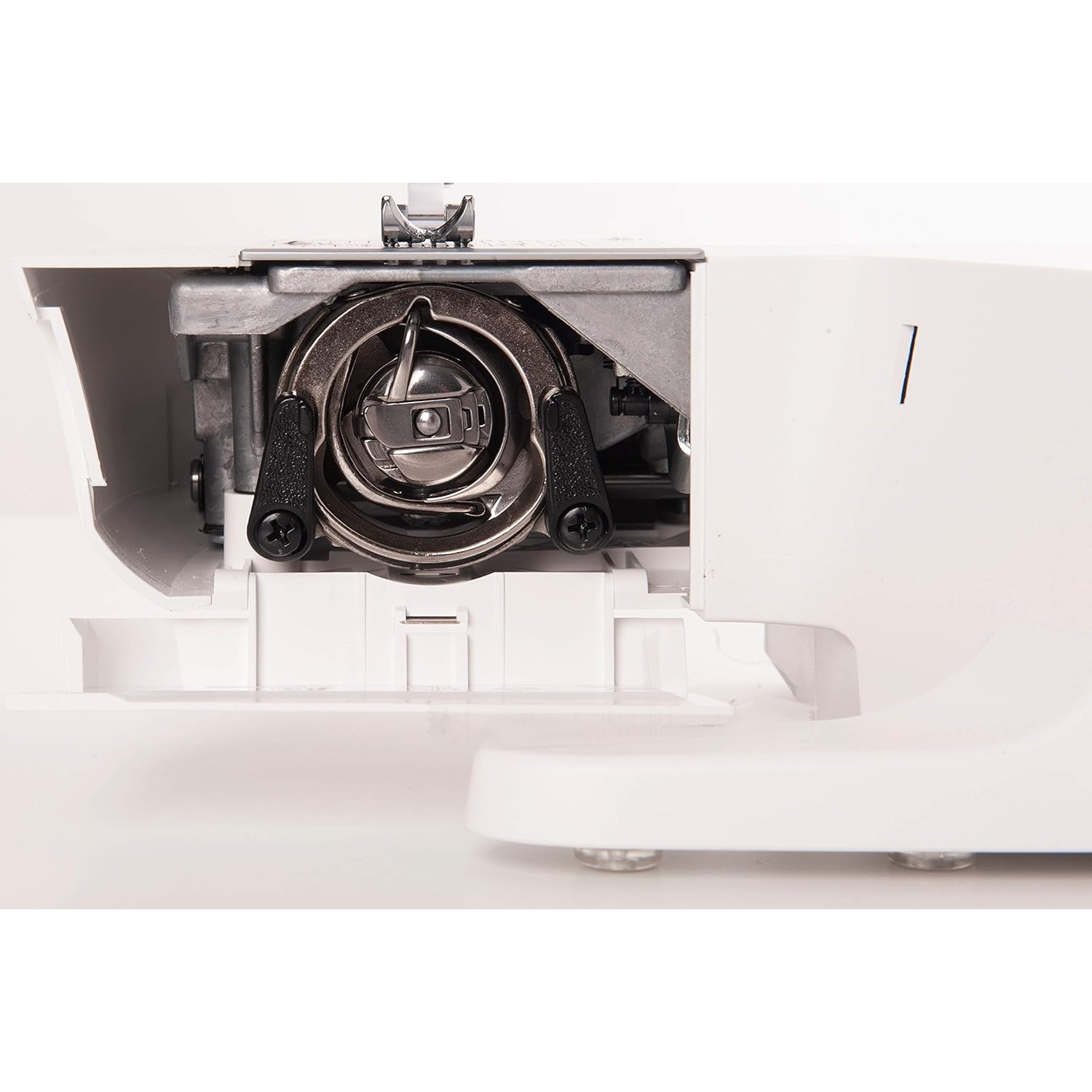 Freier Arm (+) - Schieben Sie das abnehmbare Aufbewahrungsfach ab, um Zugang zum freien Arm zu erhalten, der das Nähen von Hosensäumen, Ärmelbündchen und anderen kleineren oder schlauchförmigen Projekten erleichtert.