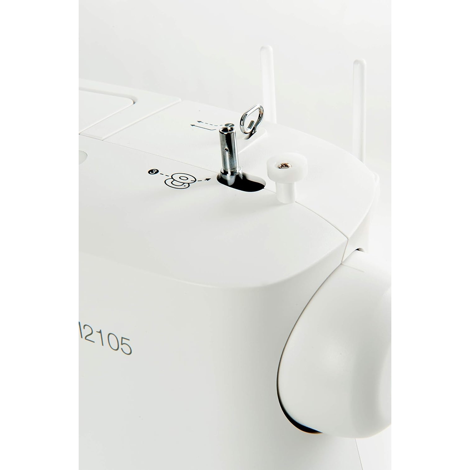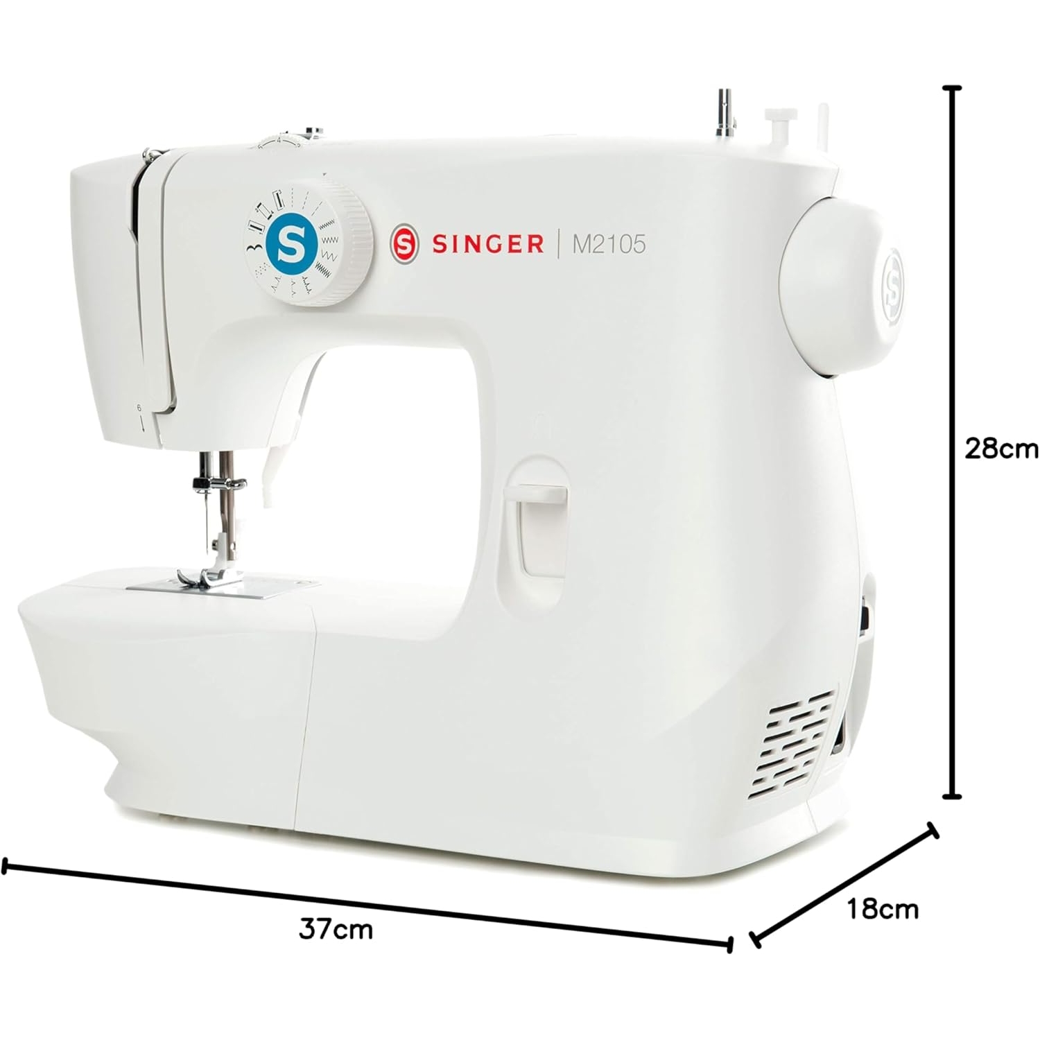 Starten Sie Ihr erstes Nähprojekt mit dem SINGER® Mit der M2105 finden Sie eine tragbare Freiarm-Nähmaschine, die Sie bei jedem Projekt von Anfang bis Ende unterstützt. Sie bietet 8 Nutz- und Zierstiche mit voreingestellten Stichlängen und -breiten, damit Sie Ihrer Kreativität bei jedem Projekt freien Lauf lassen können. Der Motor der Maschine bietet Ihnen die nötige Kraft für Haushaltsarbeiten und kleine Handarbeiten und ermöglicht Ihnen bis zu 4 Stunden Nähzeit. Im Lieferumfang sind 4 Standard-Nähfüße enthalten, mit denen Sie Knopflöcher, Verschlüsse, Knöpfe und Kurzwaren aller Art nähen können. Dank der praktischen Einfädelhilfe wird Nähen zu Ihrem Lieblingshobby.
